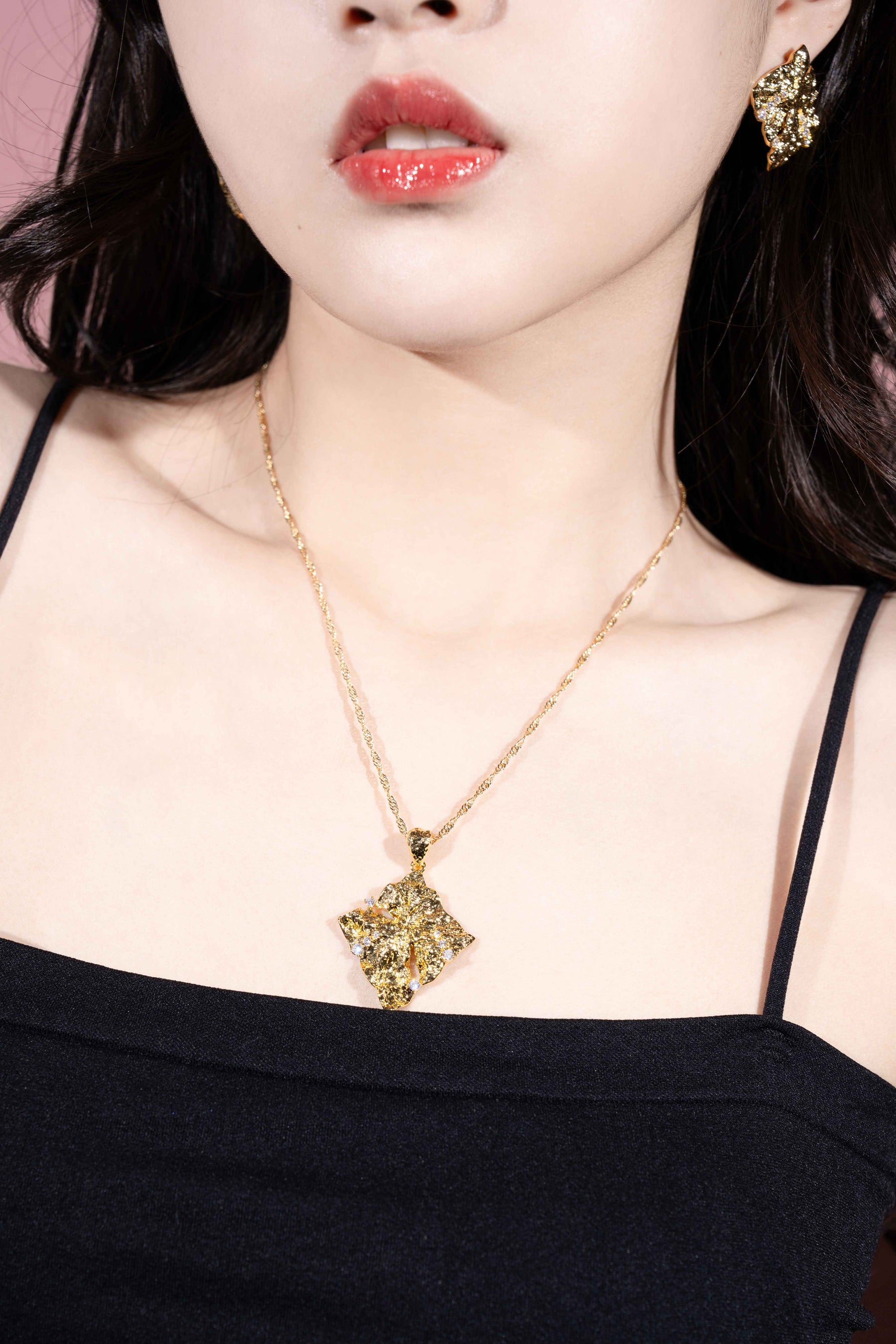 Complement the Metal Texture Earrings with this captivating necklace. The unique, textured pendant features intricate detailing and subtly sparkling cubic zirconia. Crafted from comfortable 18K gold-plated brass. The matching earrings create a stunning ensemble.