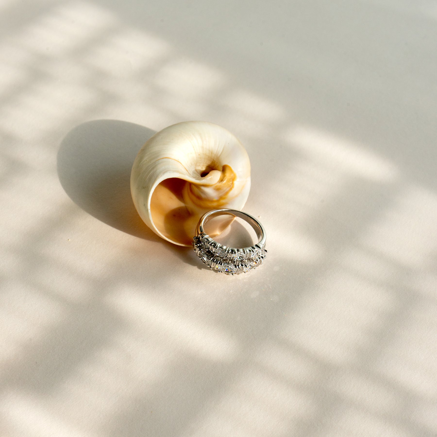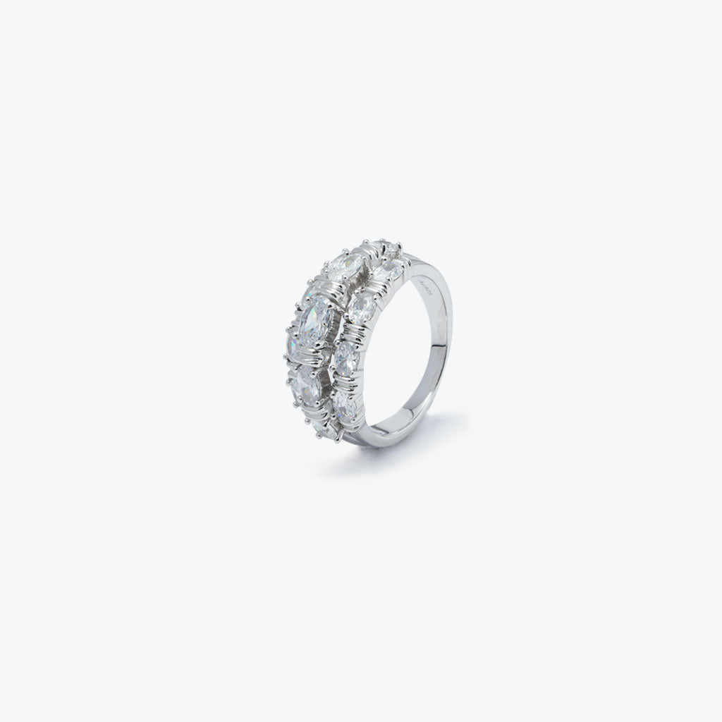 Inspired by the cosmos, this ring intertwines celestial brilliance with the mystery of dreams. Three layers of zircon stones cascade like a falling galaxy, capturing the luminous movement of stardust drifting through the night sky. Each stone is precisely cut to reflect mesmerizing light, like a vision from a dream.