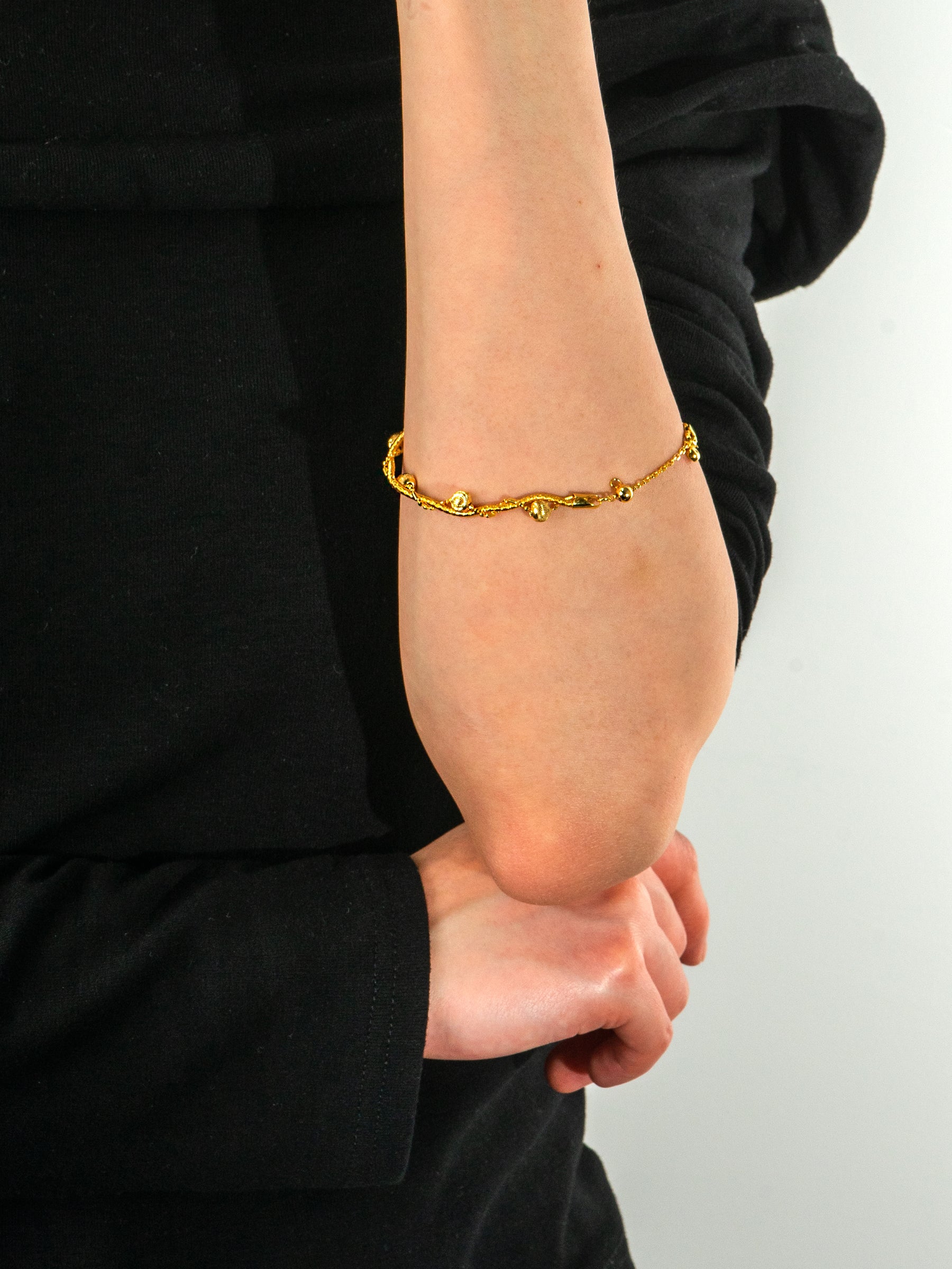Inspired by the gentle growth of vines in nature, symbolizing vitality and the delicacy of nature, this bracelet's design resembles vines wrapping around the wrist. The soft curves gracefully outline a captivating shape, perfectly showcasing nature’s elegance and vitality. The delicate chain and tiny embellishments intertwine to offer a light, natural beauty.