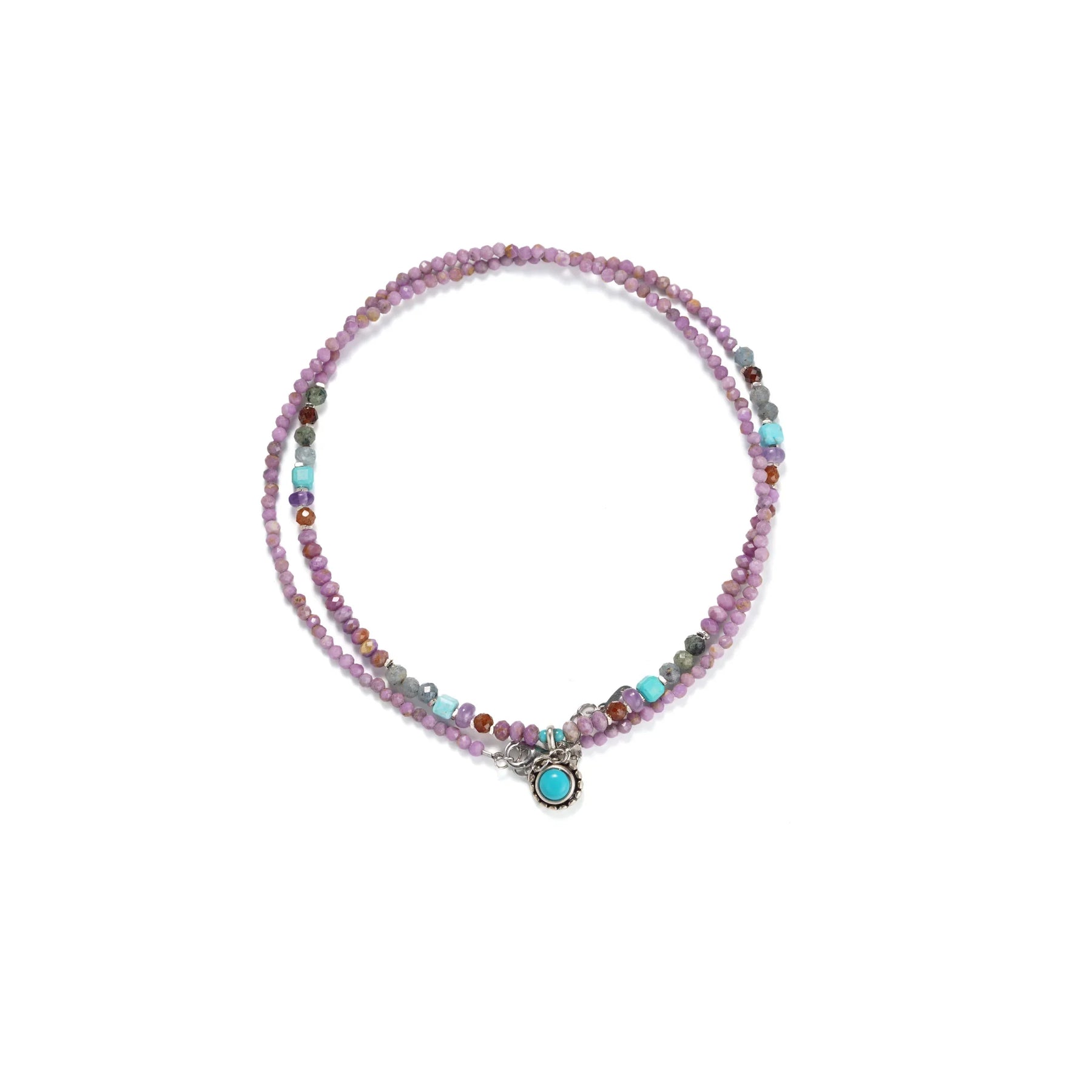 Circle Turquoise and Beaded Necklace in 925 Sterling Silver