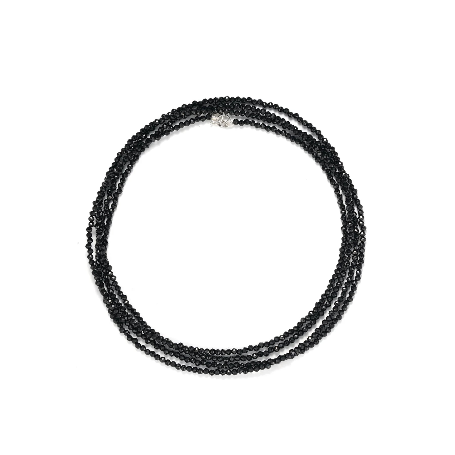 mini Black Spinel Handmade Beaded Necklace in 925 Sterling Silver