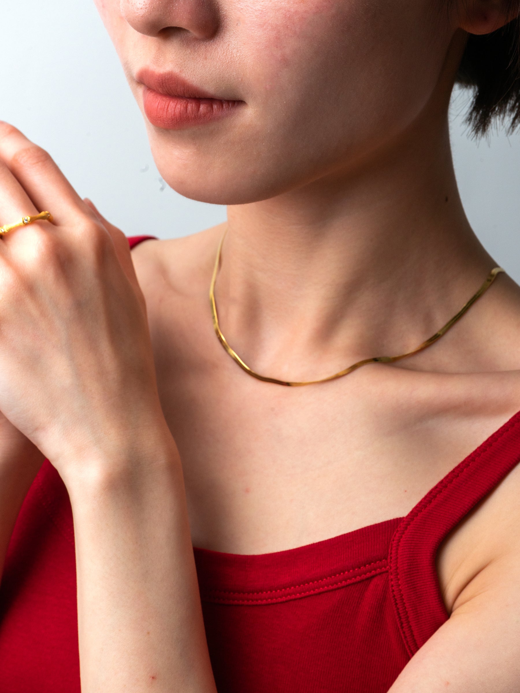 「蛇」と「絹」のコンセプトを巧みに組み合わせ、チェーンの滑らかさと肌への心地よいフィット感を表現しています。蛇のようにしなやかでありながら優雅なデザインは、力強さと繊細さを兼ね備えています。