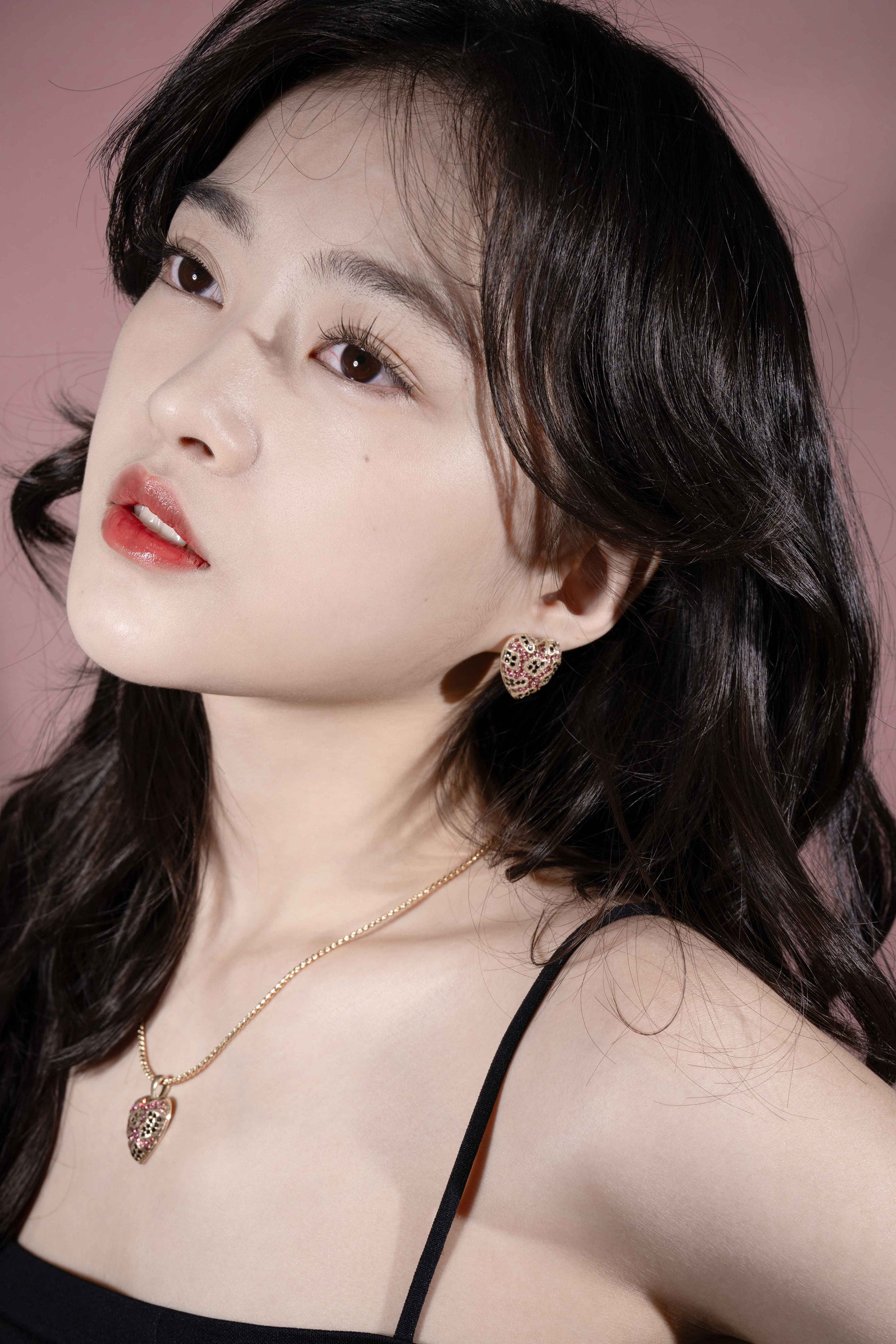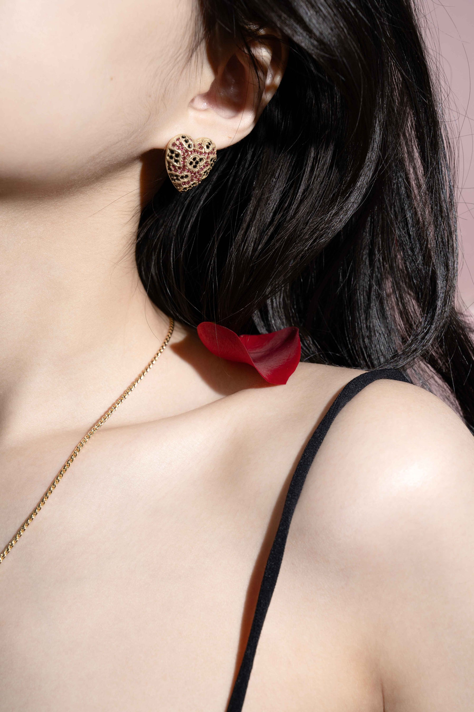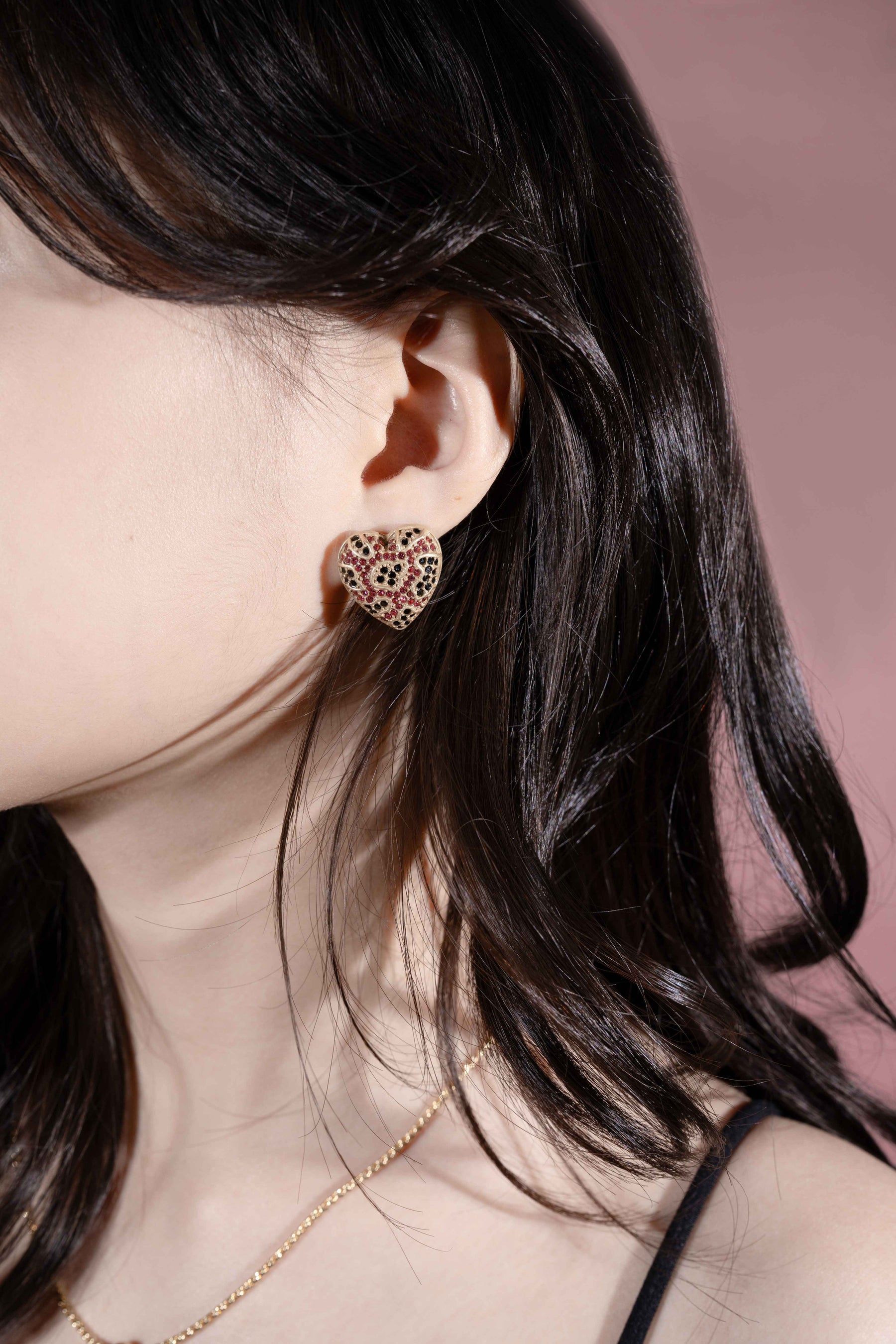 ピンクハート・ジェムストーン イヤリング